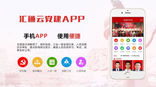 “汇通智慧云党建”项目是基于云计算、大数据等技术,创建的“实用、管用、易用”的应用服务系统,致力于作为全国政企事业单位党组织、党员干部群众和基层的终端站点,提供“党务+政务+服务”的网络服务。