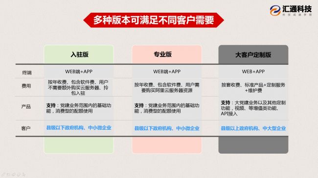 汇通智慧云党建(自主入驻版)平台,管理灵活、运维成本低,支持按需/按年付费,适合各级、各类型政企事业单位。更多关于汇通智慧云党建平台(自主入驻版)信息,可登陆http://dangjian.hvtong.cn/,免费体验,了解详情。