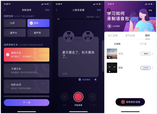 占用5分钟的时间录制20句左右的文本,然后等待15分钟上下的时间进行云端语音处理,即可下载自己专属的语音包。