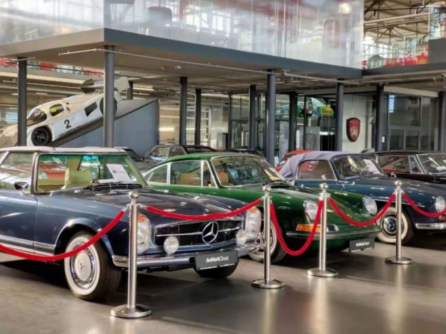 16日上午,我们来到MotorWorld,也就是德国经典汽车展示和交易场所。在这里,我们见到了曾经由莱茵检测的法拉利、宝马、奔驰等古董车,其中有相当多的车型都是极具收藏价值的经典车型,如现在只能在游戏里见到的奔驰 300SL等经典车型。