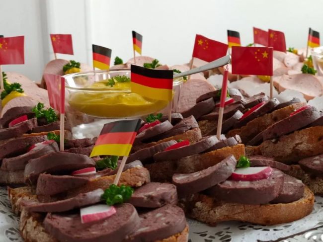 经过3个小时的车程,我们终于到达了TUV莱茵的科隆总部大楼,随后,在工作人员的带领下,我们来到TUV莱茵总部的18楼享用第一天的午餐。德国朋友们在丰盛的食物上插满中德两国的国旗,以表示对远道而来的东方朋友们的欢迎。