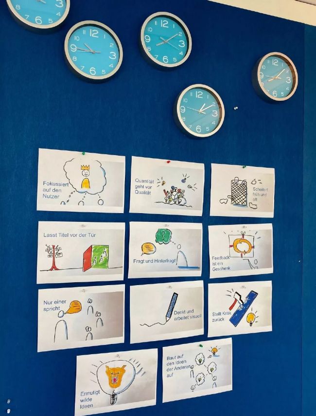据创新中心培训师凯先生介绍:他们常常在创新中心举办“头脑风暴”,而参与人员都不允许携带任何计算机设备,会规定讨论和陈述想法的时间,他认为时间越短,激发出来的想法越好,4分钟是他最推荐的时间截点。TUV莱茵在线翻译应用就是诞生于创新中心的工作间,如今在集团内大力推广并受到同事们的欢迎。