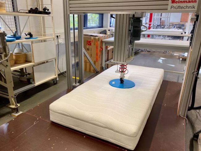 纽伦堡的第一站,是参观家具实验室,TUV莱茵的安全和质量检测,完全是建立在专业、科学、完善的测试数据之上,针对家具和玩具的各项安全要求,TUV莱茵会根据不同国家和地区的标准执行对应的测试项目,其中的床垫耐久度测试方法由TUV莱茵发明,后续被德国甚至是欧洲采纳,成为一个公认的测试标准。