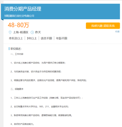 除接入分期平台外,毒App或也拟接入资金方直接上线消费分期产品。此前毒App也曾公开招聘消费分期产品经理职位,工作内容包括“设计线上消费分期产品结构,为用户提供订单分期服务”、“与后端资金对接,涉及资金方与供应商的结算流程”等。