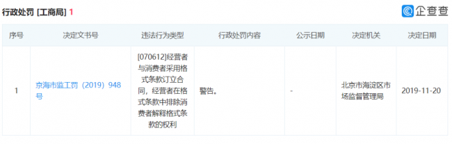 今日,桃李在线从企查查了解到,11月20日,作业帮的运营主体小船出海教育科技(北京)有限公司被北京市海淀区市场监督管理局行政处罚,给予警告。处罚原因具体为,经营者与消费者采用格式条款订立合同,经营者在格式条款中排除消费者解释格式条款的权利 。
