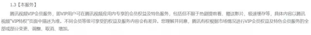 此前《陈情令》进行超前点播时,就有媒体挖出了腾讯视频VIP会员的服务协议属于格式合同,腾讯视频具有单方解释权。