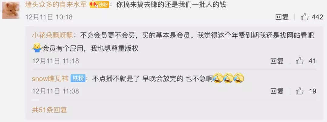 不止知乎,在腾讯视频的官方微博下,也有不少用户不满这种做法。