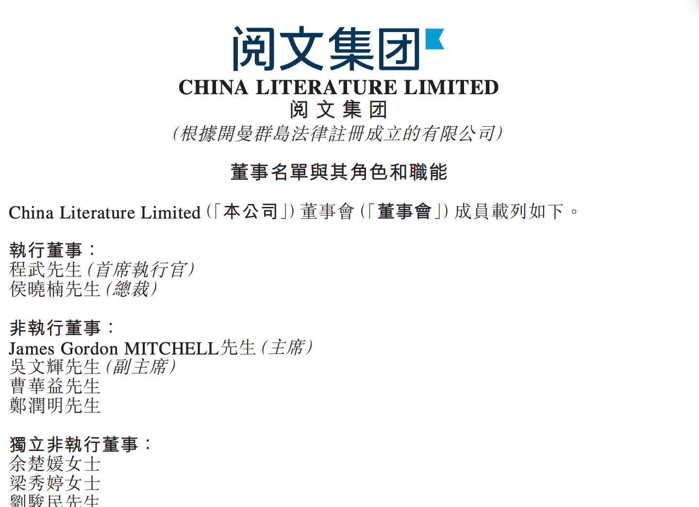 4月27日,阅文集团发布公告,宣布管理团队调整,现任联席首席执行官吴文辉先生和梁晓东先生、总裁商学松先生、高级副总裁林庭锋先生等部分高管团队成员荣退,辞任目前管理职务,吴文辉先生将调任非执行董事和董事会副主席,梁晓东先生和其他高管将会担任集团顾问,助力管理团队的平稳过渡,持续支持阅文的战略发展。