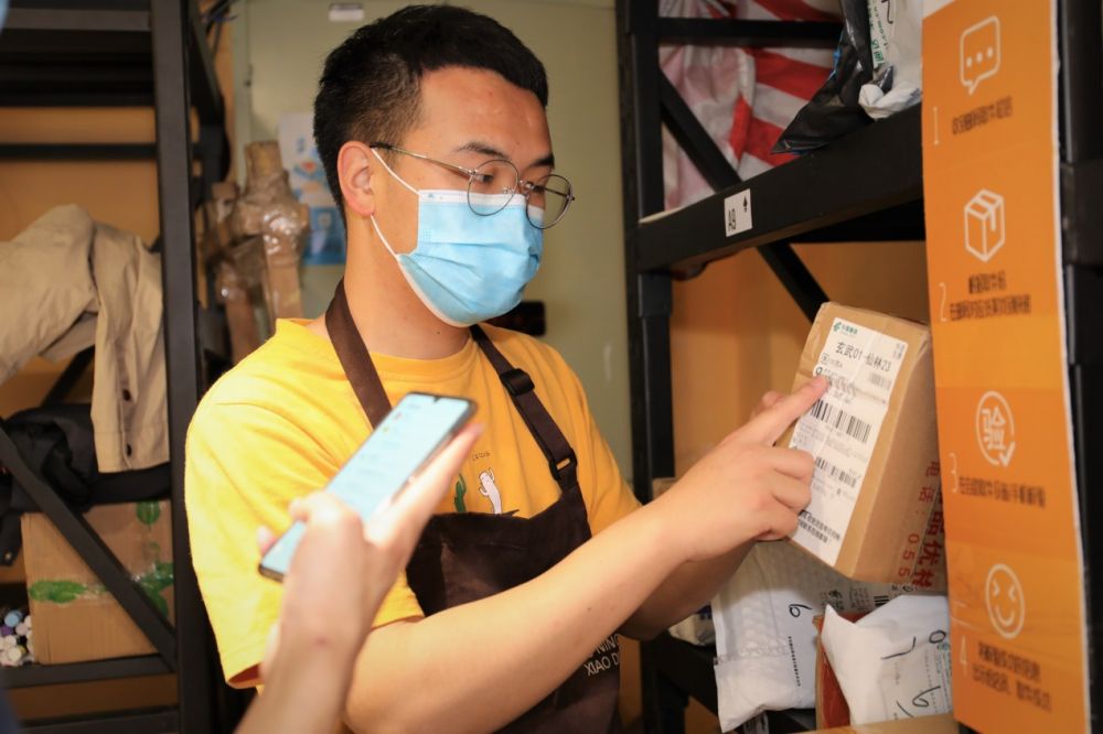 (图:王浩帮周边居民取快递)