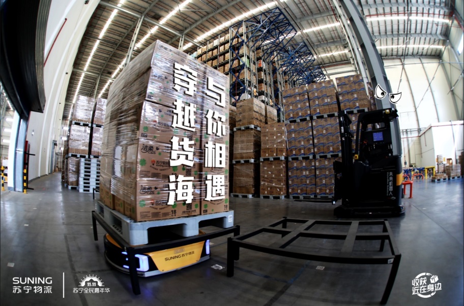 早在2016年11月,南京苏宁超级云仓已建成投产,建筑面积约20万平方米,是亚洲最大的智慧物流基地。去年8月,超级云仓迭代升级为“新一代无人仓”,已整合无人叉车、AGV机器人、机械臂、自动包装机等众多“黑科技”,实现了商品从收货上架、到存储、补货、拣货、包装、贴标,再到分拣的全流程无人化运作。