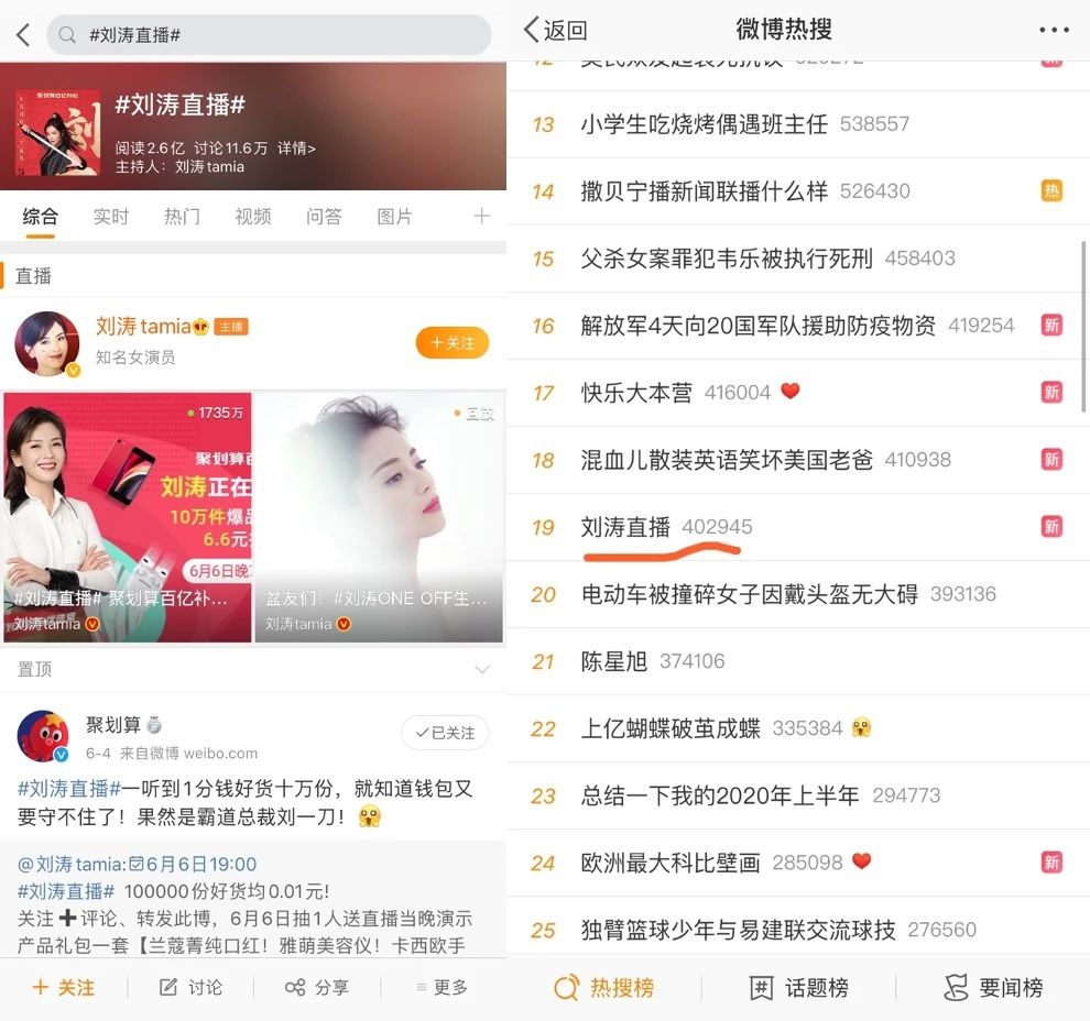 与此同时,拼多多6月6日也通过明星直播推荐等方式,开始了618预热,除“百亿补贴”之外,又叠加了“推荐官补贴”。相比之下,聚划算的618明星直播合作度更深,这一次618更是把刘涛直播模式全面进阶升级,打造了新的辉煌战绩。