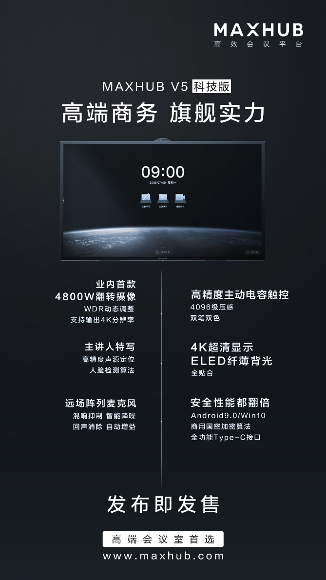 在技术层面,MAXHUB V5拥有众多业内首创的缝隙发声、首次应用于会议平板的翻转摄像头和升级摄像头、旋转屏幕、双屏合一、最高提升到100%的NTSC高显示规格、提笔即写的人性化功能,同时,MAXHUB V5 智能会议平板也成为行业内首个获得赛宝实验室安全证书的产品。这都让我们看到的作为市占率第一的品牌硬实力和产品创新力。