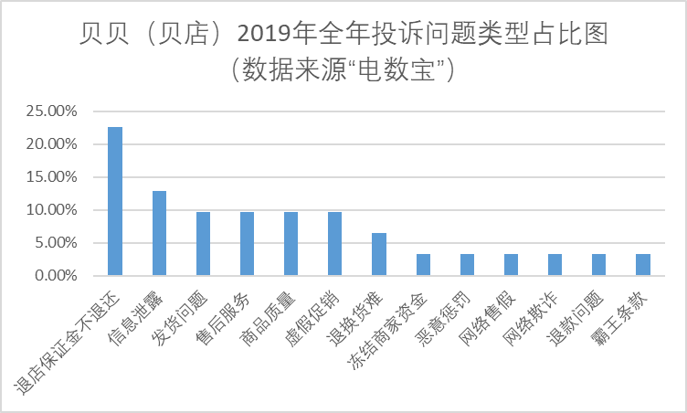 此外,根据“电诉宝”受理用户维权案例显示,“贝贝(贝店)”还存在退店保证金不退还、信息泄露、发货问题、售后服务、商品质量等问题。
