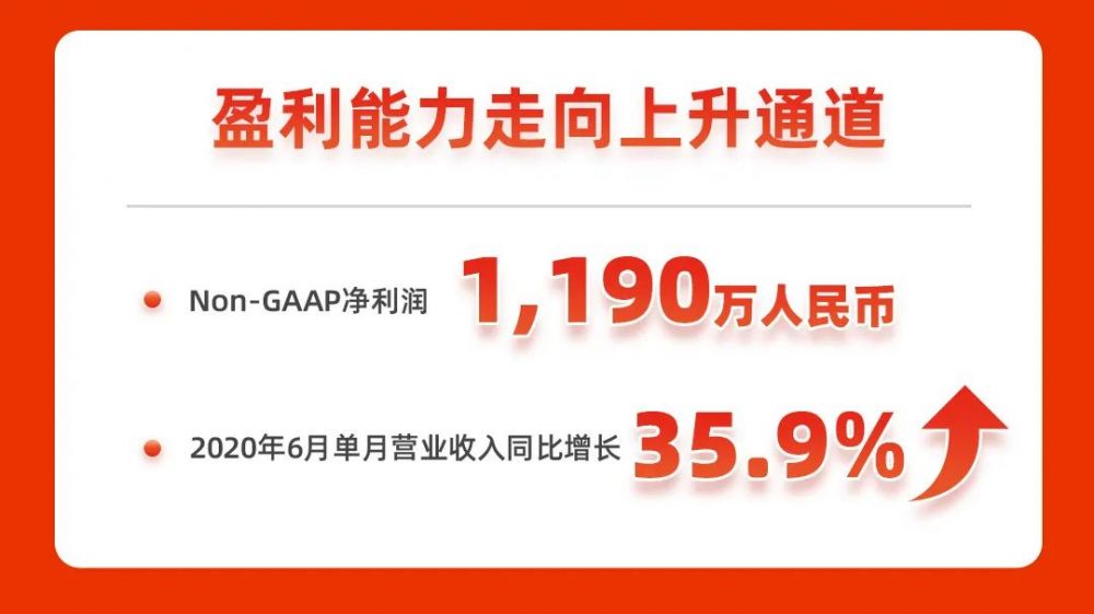 财报显示,2020年第二季度,非美国通用会计准则(Non-GAAP)下,房多多的净利润为1,190万人民币(约170万美元),其中6月单月在非营业收入同比大增35.9%,盈利进入上升通道。