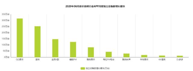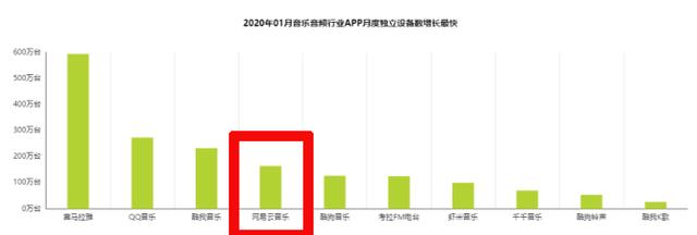 在另外一组音频行业App月度独立设备数增长最快的数据中,今年1月网易云音乐还位于第四位,而到6月则直接跌出前十。