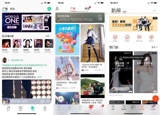我们此前在《在线音乐的中场战事:版权之后,围猎“社区”》一文中分析过,「云村」的社区运营较为分散,乐评、Mlog充当社交媒介,更多是陌生人社交;而「扑通」做的更明确一些,为用户和粉丝提供以兴趣和明星为中心的群组功能,相当于塑造了社区的中心点,让用户和粉丝更为集中的以同好而社交。