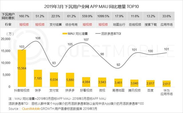下沉市场的潜力是巨大的。QuestMobile数据显示,下沉市场用户规模超过6亿,存在巨大红利。