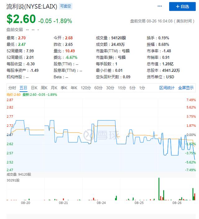 从财报表现来看,流利说仍处于营收下滑亏损扩大的泥沼。截至目前,流利说周四盘前股价为2.6美元,市值为1.28亿美元。回顾2018年9月,流利说赴美上市发行价达12.5美元,而如今股价在持续下跌,市值缩水严重。
