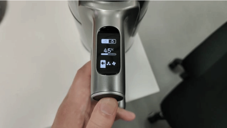 握持手把的上方,H6配备了一块OLED显示器,能够直观清楚的看见电量和续航时间等。吸力方面,石头手续无线吸尘器H6内置矢量变频电机,配合先进的FOC控制算法,能够提供高达25000Pa的真空吸力,有效吸入地板缝隙的积尘和床褥内部的尘螨,日常清洁更是能轻松应对。