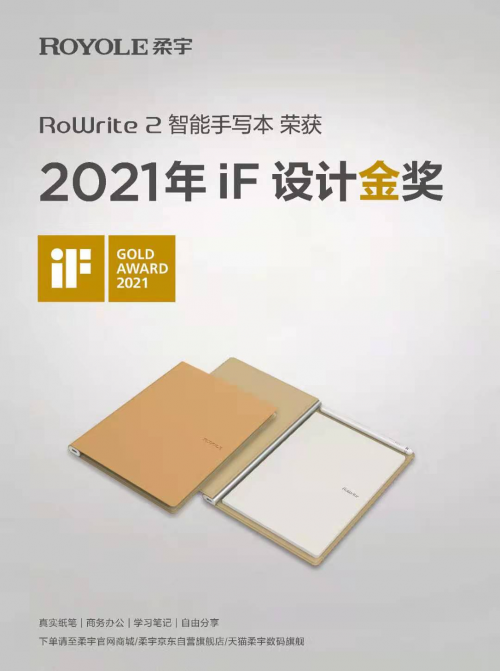 图5:柔宇柔记2智能手写本斩获素有“设计界奥斯卡”之称的2021 iF设计金奖