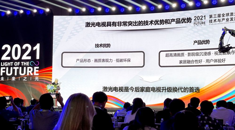 “激光电视在产品形态、画质表现力、低碳环保等多方面的技术优势,使其有着超高清画质、影院级沉浸感、健康护眼、家居融合性好和用户体验好等产品优势,是今后家庭电视升级换代的首选”。中国工程院院士许祖彦9月16日在第三届全球激光显示技术与产业发展论坛上力陈激光电视独特优势并现场推荐,他同时指出,与其他新型显示技术相比,激光显示具有明显的差异化技术优势,将成为下一代显示产业的主流,实现显示产业的升级换代!