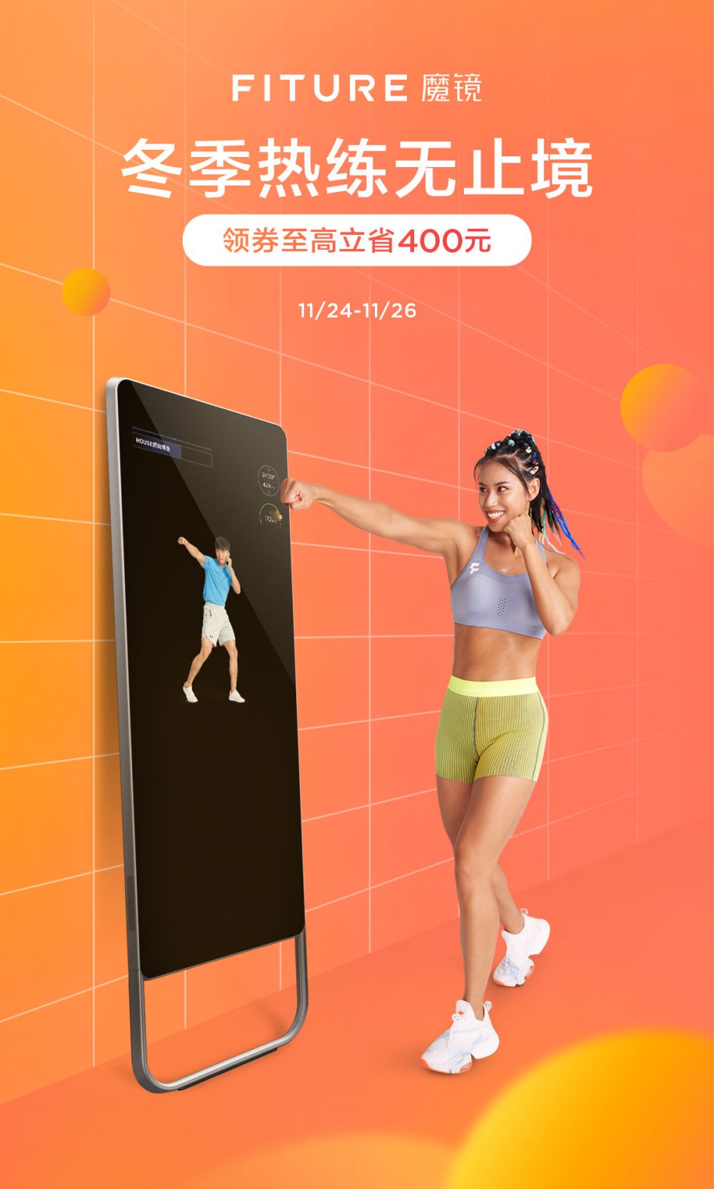 11月22日起,FITURE上线了魔镜mini新品预售活动,下单可抢价值199元心率带赠品,与魔镜mini新品配合使用,数据监测更加精准。在11月24日大牌日活动当天,FITURE爆款产品限时秒杀,全场领券立减,至高直降800元,FITURE魔镜尊享和旗舰系列产品还能享受至高12期的免息。
