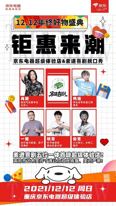 除了激烈的王者比赛外,12月12日,重庆脱口秀新秀团队“索道喜剧”也将来到京东超体重庆店中庭。索道喜剧是重庆唯一的以单口喜剧为表演形式的喜剧俱乐部,此次将由4位表演嘉宾上台带来爆笑脱口秀,在重庆的小伙伴们不容错过!