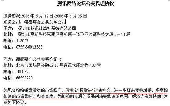 其实,腾讯恶意诽谤竞争对手的先例早已有之。早在06年,就有网友爆出,腾讯雇用公关公司制造假新闻,打击竞争对手淘宝网!