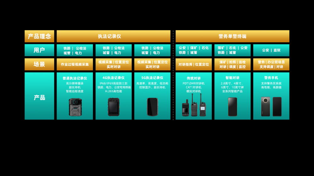 目前,海信通信在移动安防产品线上已汇聚了综合执法、铁路作业、防爆终端3大行业应用解决方案,涵盖执法记录仪系列、智能单兵系列、智能配套产品系列以及自主研发的海联多媒体融合指挥调度平台等多个产品体系,多项产品及服务满足了包含国内相关执法部门及铁路交通、水务电力、工矿企业等客户的切实需求,从而备受关注。