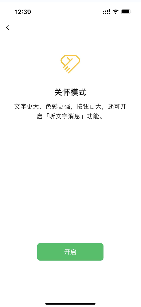 进入关怀模式界面后,点击下方开启按钮,即可进入关怀模式。