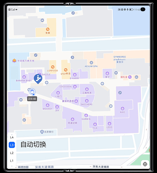 近日,华为宣布 HUAWEI Mate Xs 2 成为业界首发 3D 精准室内定位的手机,其中HUAWEI Mate Xs 2 用户在 使用高德地图 App 即可实现“店铺级”精准定位、跨楼层自动切换,以及定位连续不间断的室内定位新体验。