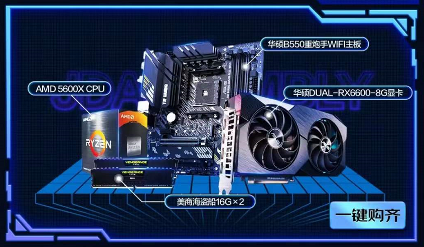 觉得组装电竞主机麻烦的朋友,还可以考虑购买组机套装,华硕在本次活动就上架了主板+显卡+CPU+内存套装,让广大发烧友们能把DIY装机核心配件,一站式购齐。其中,套装中主板为华硕B550重炮手WIFI主板,拥有一系列游戏增效技术,支持AURA SYNC神光同步;显卡则为大家配备了华硕DUAL-RX6600-8G显卡,性能好,性价比高;再加上AMD 5600X CPU以及海盗船16G×2套装3600内存。这一整套下来,京东到手价仅4897元。