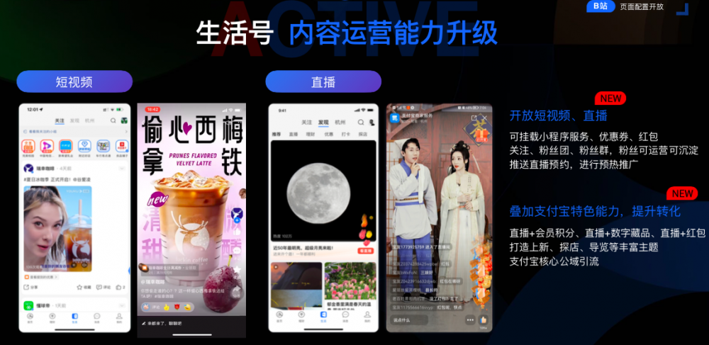 陈先达称,此次升级,是为了满足商家更丰富多元的服务信息表达以及提升自运营效率。生活号从原来的单一图文信息,升级为短视频、直播、图文等多种内容形式,并以信息流展示模式聚合在支付宝App首页中心位“生活频道”,支付宝开放这一核心公域流量阵地,旨在帮助商家私域可持续自运营。