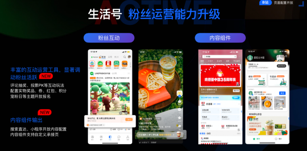 同时,生活号还与支付宝小程序打通,商家可以在发布内容中挂载卡、券等小程序营销组件,支持粉丝互动、粉丝福利等用户运营功能。生活号与小程序一起,组成了商家在支付宝上自运营的两大阵地,提供从服务到内容更加顺滑的用户体验。