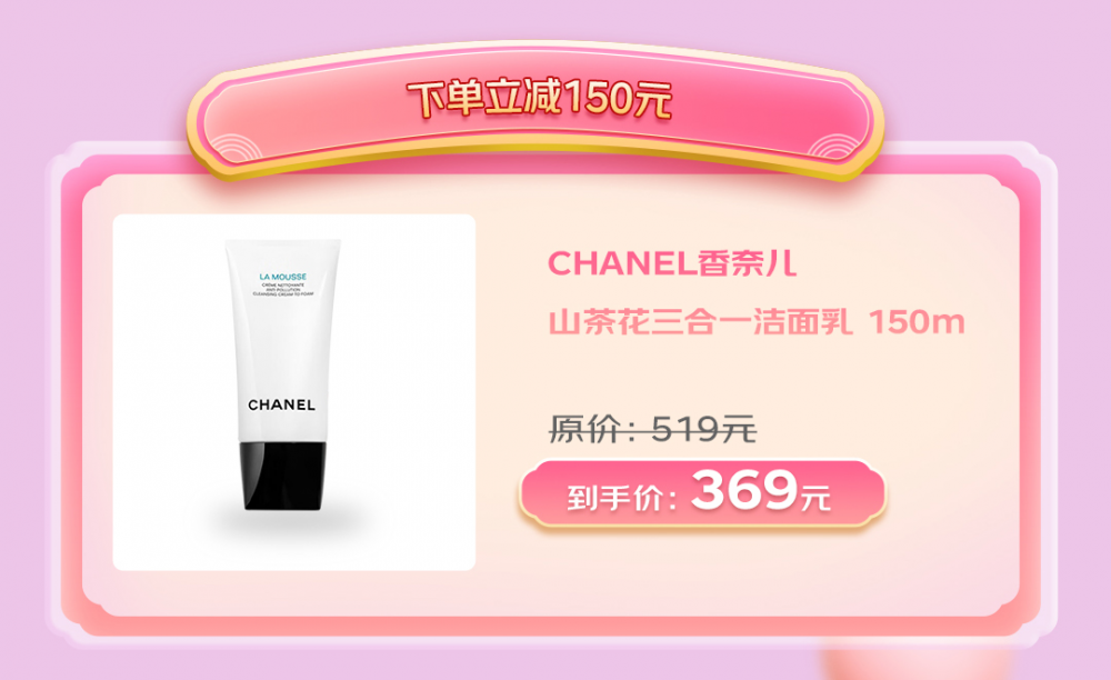 当然,七夕礼物清单中,一定少不了各类美妆产品,它们长期占据着各大送礼榜单C位。其中香奈儿(CHANEL)山茶花三合一洁面乳作为网红洁面单品,一直备受女生喜爱。现在下单,立减150元,原价519元的洗面奶到手价仅需369元。