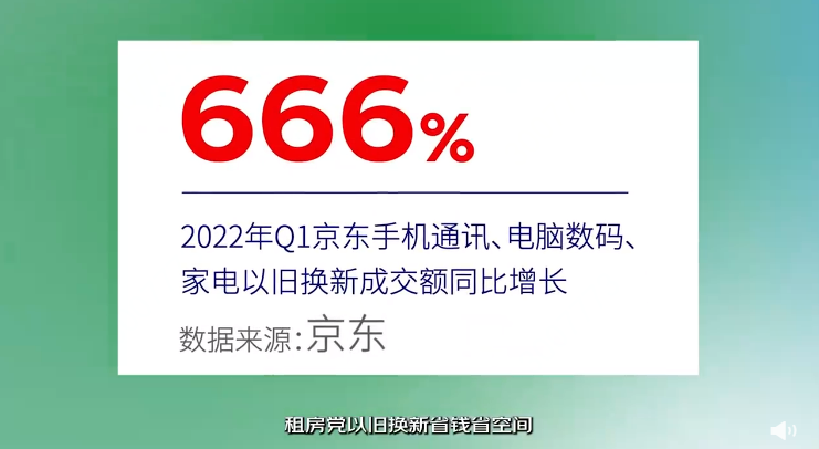 作为年轻消费者焕新电器产品的主阵地,京东电器的以旧换新数据也印证了上述这种消费趋势。据京东数据,2022年第一季度,手机、电脑数码和家电产品以旧换新的成交额同比增长666%,通过以旧换新,可以让废旧电器得到专业回收处理产生环保价值,同时也能为租房的年轻人节省更多生活空间,一举多得。
