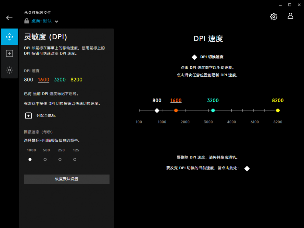从上手体验感来说,G705的按键没有采用完全静音化设计,这样的好处是能够给玩家带来优良的回馈感,清脆的按键音能够让用户不自觉的用潜意识辨识操作的可靠性,同时滚轮的顺滑度也尚可。而较为突出的是移动的顺滑度,大面积脚垫加分不少,并且在基本参数上,这款鼠标支持100-8200之间自定义,回报率最高达到1000,最低可调至125。