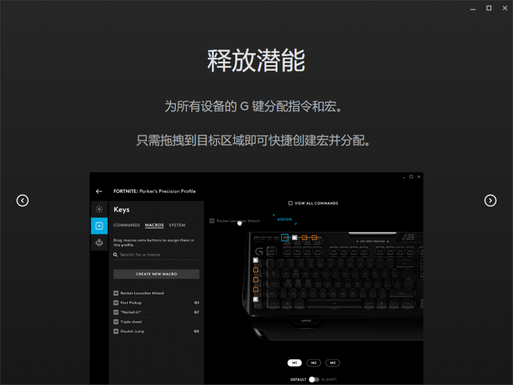 没错,与G705鼠标的自定义功能一样,这是一款可以自定义宏的游戏键盘,所以在很多网友场景下,这个功能可谓顶级利器,该功能可以与灯效一样,通过Logitech G HUB套件编辑来实现。