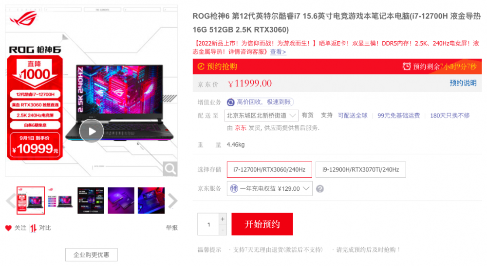 对于资深游戏玩家而言,ROG标志性的“大眼睛”无论是在PC、外设还是笔记本领域,都代表着发烧级的性能与极佳的游戏操控能力。而ROG枪神6电竞游戏本作为2022年上市的新品,搭载第12代英特尔酷睿i7-12700H处理器,14核心20线程以犀利实力助力玩家无往不胜。同时,其搭配有RTX3060独立显卡,140W满功耗释放,支持实时光线追踪,15.6英寸2.5K、240Hz赛事级电竞屏加持,采用冰川散热架构2.0,全方位释放玩家战力,堪称“一站封神”的利器。9月1日当天逛京东电脑数码下单,更享直降千元的超值福利,ROG幻16、ROG枪神6 Plus等电竞好物也有惊喜来袭,欲购从速!