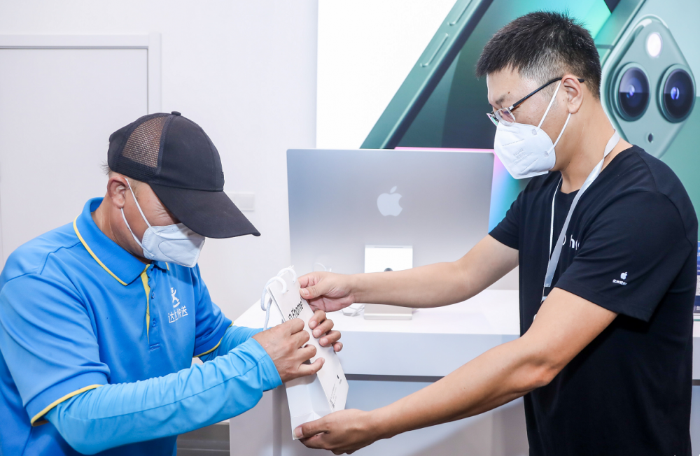 达达骑手在JD Ehome店内取件,为消费者配送Apple产品