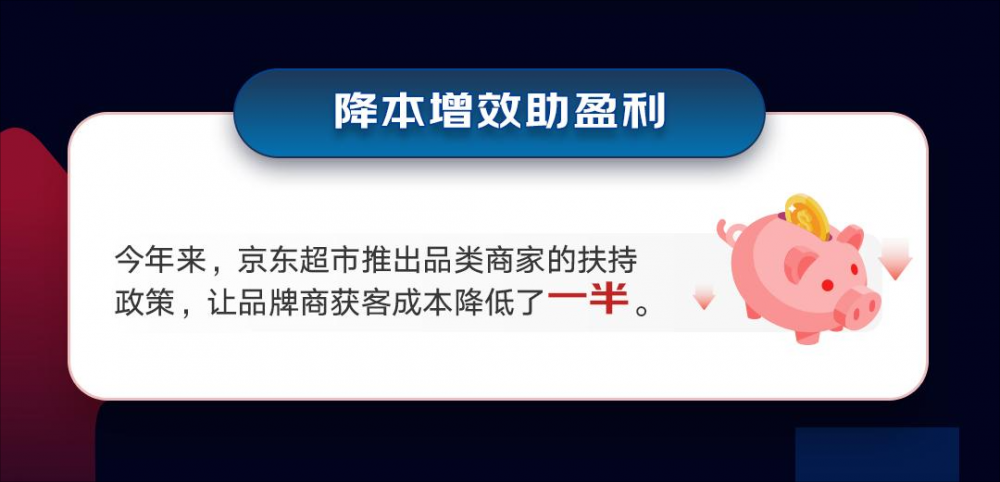 今年来,京东超市推出品类商家的扶持政策,让品牌商获客成本降低了一半。