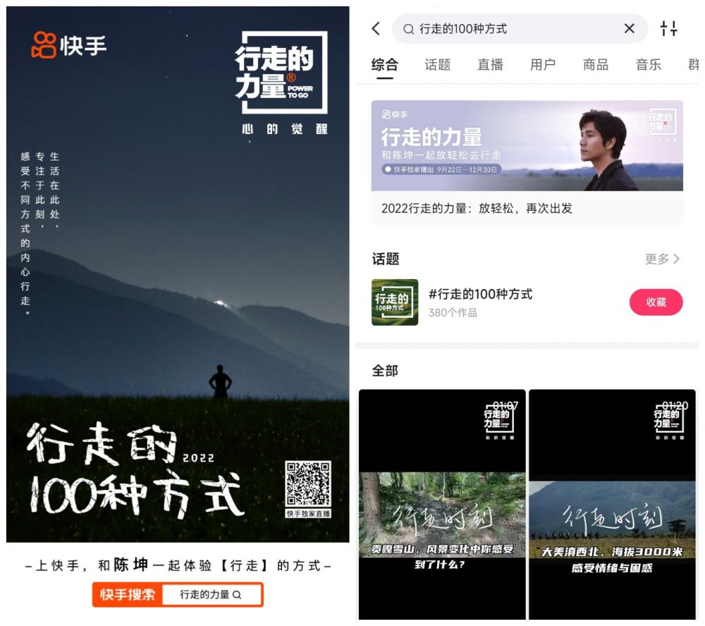这种努力生活、心怀光亮的态度,与快手“拥抱每一种生活”的理念不谋而合。于是,经历2021年的短暂休整,“行走的力量”在2022年选择与快手合作,希望通过国民级短视频与直播平台向更多人分享行走体验。为了如实呈现这股坦然面对生活的力量,拥有海量用户与庞大流量的快手,将利用强势资源发起站内活动和4场环境直播,助力2022“行走的力量”破圈传播,并吸引更多兴趣圈层入圈属于自己的行走。