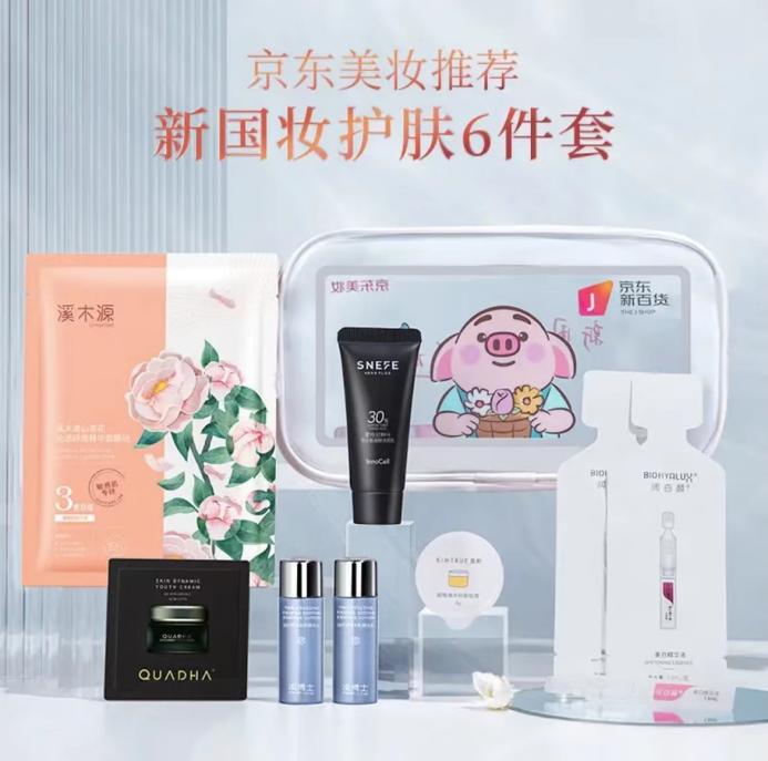 此外,京东新百货还联合雪玲妃、润百颜、溪木源等6大新锐国货品牌,推出了低至9.9元“新国妆护肤6件套”品牌联合体验包,涵盖卸妆膏、洁面乳、水乳、精华、面霜、面膜六大护肤品类,一次购买即可将多个品牌的明星产品收入囊中。该商品于9月26日全面开售,让“新中式青年”以低价尝鲜体验装之后,进一步了解并喜爱国货美妆好物。