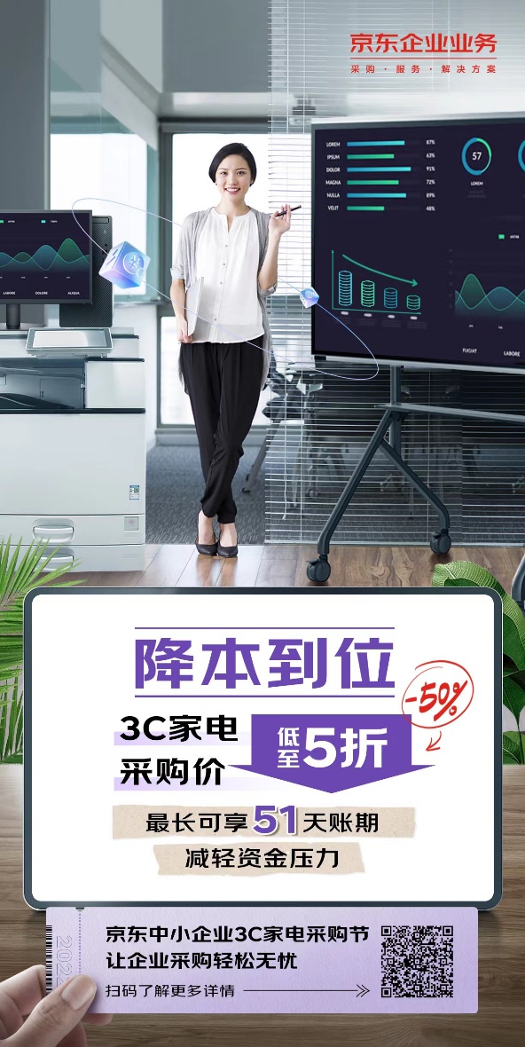 近几年,疫情的反复为经济和企业的发展带来了不确定性,中小企业需要做好随时应对供应链受阻、库存紧张、经营成本增加等诸多突发状况,向内控成本成为企业提高抗风险能力的重要手段。中小企业迫切期待在采购时能够降低采购成本,减轻经营压力,实现企业的长效健康发展。京东中小企业3C家电采购节,企业用户采购3C家电好物不只可享企业专享的采购价、低至5折的钜惠福利,还可以通过京东提供的金融账期服务“企业金采”,实现物资的“先采购、后付款”,用户开通可享首单立减300元的优惠,帮助企业减轻短期内的现金流压力,减轻中小企业经营负担,全面降低企业采购成本。