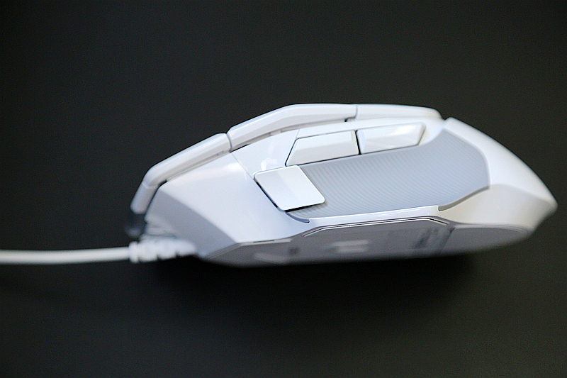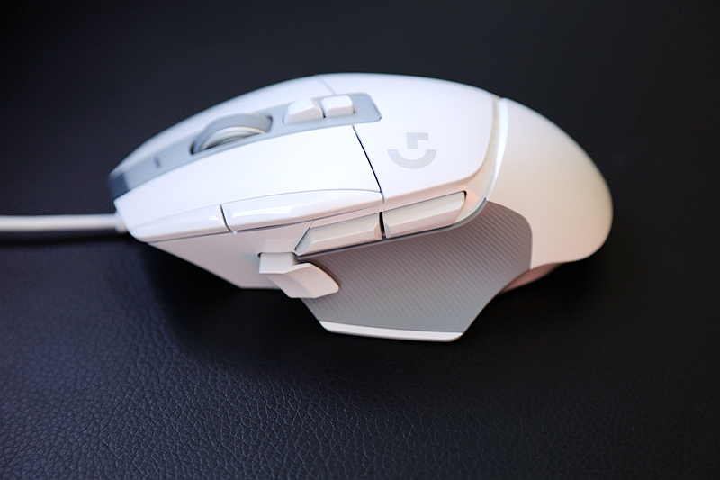在产品尺寸上,罗技G502X的大小相比此前更为适中,不仅更好的适配了亚洲人的手性,即便是女性玩家也不会显得难以把持,整个产品也高度符合人体工学,不仅掌心区域的贴合更为顺手,而且拇指支撑位也更为自然,所有的按键布局也在激发趋势上更加贴近短距离的位置。