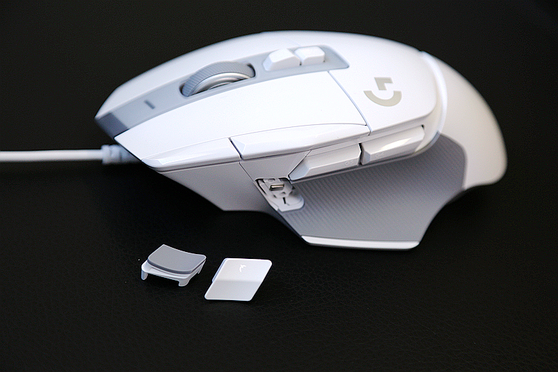 第三个就是DPI的切换按键的双定义,也就是罗技针对拇指的DPI按键提供磁吸式设计,并提供了额外的键帽,如果在使用时不需要调整DPI,那么可以选择固定键帽封闭,防止游戏时有牵绊感或误触激发。
