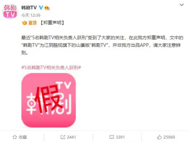 此前,2019 年 7 月至 2020 年 8 月,“韩剧 TV”App 在华为、OPPO、小米、vivo 等手机应用市场上线,非法复制韩剧 795 集、韩国综艺节目 2127 集供人观看,从中收取广告费,共计非法经营数额为人民币 221 万余元。