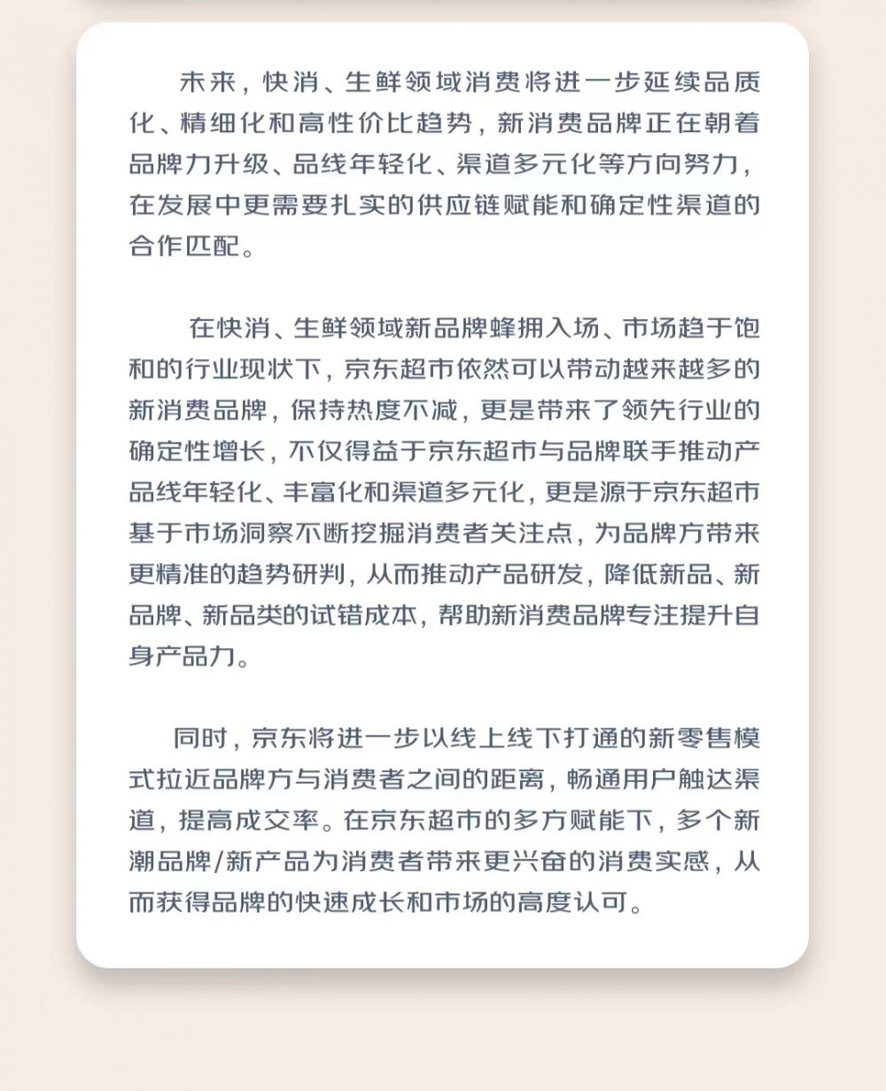 新消费品牌主打高线城市 京东超市带来领先行业的确定性增长