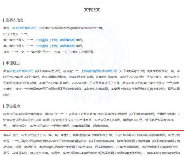 驱动中国2022年12月19日消息,据平台显示,近日,华为技术有限公司与张某某侵害商标权纠纷一审文书公开,华为打假山寨耳机获赔40万元。