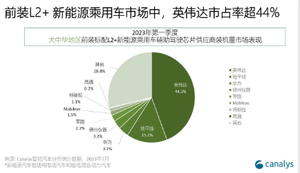 其中,2023年一季度,中国(含进口)前装标配L2+辅助驾驶功能的新能源乘用车市场中,英伟达市场占有率达44.2%,地平线市场占有率达15.1%。资料显示,l2辅助驾驶就是l2级别的自动驾驶,即车辆实现部分的自动化,就是系统和人要一起控制汽车,辅助驾驶系统至少需要纵向和横向的自动控制功能,某些特定情况下车辆可以自动运行。